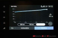 En tout-terrain, même avec des pneus route, son poids et sa hauteur de caisse en font un franchiseur de talent. Il suffit de sélectionner le mode 4×4 et rien ne l’arrête. Equipé de “Media Display”, il permet de lire sur l’écran central des informations typées Offroad du style inclinomètre latéral, angle de tangage, boussole et altitude. Un récapitulatif de l’historique de la randonnée est possible.