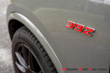 392. On retrouve un peu partout ce chiffre. 392 cubic inches ou plus simplement 6.4 litres ! Voici donc la cylindrée du V8 HEMI greffé au cœur de notre Durango SRT. Affûté comme il se doit, ce gros moteur atmosphérique développe 481 ch pour un couple de 637 Nm. Un vrai tracteur !