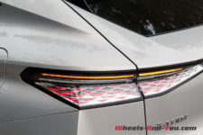 Un coffre bombé avec, de part et d’autre, des feux arrière très travaillés et creusés dont l’intérieur est composé de formes triangulaires très design. Le bas du pare-chocs laqué noir intègre les feux de recul et antibrouillards et deux grandes fausses sorties d’échappement chromées. Cette « poupe » inspire dynamisme et sportivité. Loin du projet D45, le style, sans être osé, propose une voiture moderne. Elle est différente et elle l’assume.