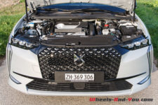 Notre DS 4 E-Tense dispose du connu quatre cylindres essence 1.6 PureTech de 180 ch associé à un moteur électrique de 110 ch placé en amont d’une boîte de vitesse automatique à 8 rapports. Cette association délivre une puissance cumulée de 225 ch avec un couple maxi de 360 Nm.
