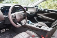 De plus, la qualité des matériaux est luxueuse. Le toucher est agréable. Alcantara, cuir, aluminium s’assemblent pour le plaisir des yeux. Quand on referme la porte, le son émis par cette dernière est sourd, synonyme de « costaud ». C’est digne du segment premium. La concurrence allemande sera plus austère avec moins de détails de qualité dans les matériaux.