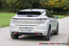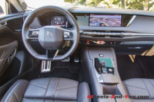 En conduite dynamique, l’ABS se déclenche assez vite. Cela freine, mais le poids se fait sentir. C’est troublant car le châssis, lui, encaisse tellement bien qu’au moment du freinage on oublie qu’il y a presque 1.7 tonnes à stopper. Plus que la puissance dans ce mode et pour peu qu’il reste de l’autonomie « électrique », c’est le couple qui est agréable. Pourtant, face à ses rivales allemandes qui offrent des moteurs plus coupleux dépassant les 400Nm, cette DS 4, avec « seulement » 360 Nm, pourrait faire pâle figure. Il n’en est rien, le couple omniprésent est largement suffisant et les 225 ch aussi. La réaction à l’accélérateur est immédiate, cela offre un confort agréable dans toutes les situations.