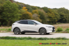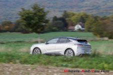 Je démarre en électrique, les poignées de porte se rétractent dans leur logement à la manière du train roulant d’un avion. Si la batterie est pleine, je peux atteindre 135 km/h sans que le moteur thermique ne se réveille. Mais il faut avoir le pied léger car dès la moindre demande de puissance, il démarre. En mode hybride, position B pour récupération maximale au lâcher des gaz et si l’on joue le jeu d’une éco conduite avec une recharge journalière, la DS4 sera un vrai chameau sur une distance quotidienne d’environ 100km. Elle pourra ainsi descendre sous la barre des 4 l/100km et ce même sur des routes de montagne, ce qui est remarquable.