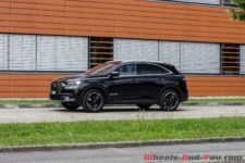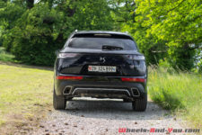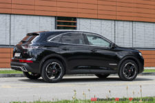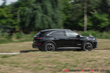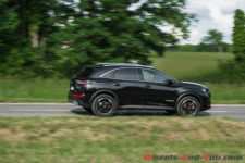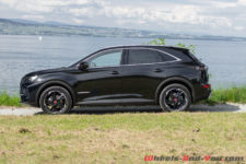 La calandre, avec en son centre un imposant logo DS, renforce l’image statutaire que la marque souhaite imposer. Alors que normalement ces différents éléments sont mis en avant par des entourages chromés à l’apparence luxueuse, sur la finition « Performance Line » qui équipe notre voiture d’essai, ils sont noirs. Pour ma part, je préfère le style un peu plus sportif, d’où mon souhait prononcé d’essayer cette version en particulier.