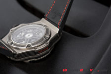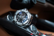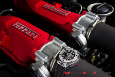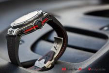 Afin d’agrémenter mon essai, j’ai le privilège de disposer également d’une montre à la hauteur de mon destrier, une Hublot Big Bang Ferrari Titanium. En effet, l’horloger suisse collabore étroitement avec Ferrari depuis 2011. D’ailleurs, cette année, Hublot a même présenté un nouveau modèle, la Techframe, qui a été dessinée par l’équipe du design Ferrari, une première !