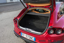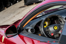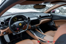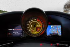 Je m’installe aux commandes et je retrouve le feeling d’une véritable sportive de Maranello. Le toucher du volant habillé de carbone est sensationnel, j’ai juste envie de démarrer la voiture et rouler jusqu’à ce que le réservoir soit vide. L’ensemble compteurs est identique aux autres modèles de la marque et, combiné avec le « manettino », ça confirme l’ADN sportif. C’est presque déconcertant dans une voiture qui affiche une praticité hors du commun pour une Ferrari.