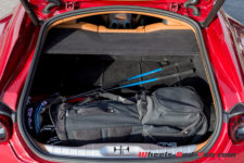 C’est le week-end, il est temps de reprendre les habitudes et, dans la vie d’une famille, bon nombre d’activités s’imposent, que ça soit aller faire les courses ou aller à la déchèterie. Et bien je vous l’assure, tout cela est faisable avec cette Ferrari, elle s’adapte à toutes les situations. Une fois les obligations effectuées, j’embarque mon sac de golf pour aller taper quelques balles, rien n’arrêtera cette GTC4 Lusso T. Certes, pour aller skier, sa grande sœur équipée des 4 roues motrices sera plus appropriée. Toutefois, avec les assistances à la conduite et des bons pneus, même cette déclinaison fait l’affaire et pas d’excuse, les skis passent aussi à l’intérieur.