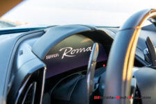 Pour commencer, je dois vous faire part d’une anecdote : quelques semaines avant l’essai, j’ai passé un weekend chez des amis et on a un peu parlé voiture. Une amie me dit que son papa a commandé la Roma et qu’une fois reçue, il était déçu et il l’a revendue aussitôt. Ses griefs : pas confortable et une connotation trop « ostentatoire ». C’est donc avec une petite appréhension que je réceptionne la voiture à quelques centaines de mètres de chez moi.