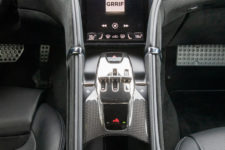 Globalement, la qualité des matériaux (cuir, alcantara, etc.) est au rendez-vous et l’agencement parfaitement réalisé. Un seul bémol : la grille en plastique qui permet de sélectionner les vitesses au centre de la console. Du plastique avec un aspect chromé que je trouve vraiment lamentable et pas d’autre option pour cette pièce pourtant visible et touchée fréquemment par le conducteur.