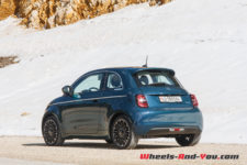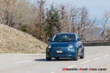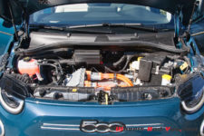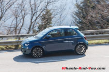Un moteur synchrone développant 87 kW, soit l’équivalent de 118 ch, est alimenté par un bloc de batteries de 42 kWh de capacité. Ces batteries pesant 294 kg sont judicieusement logées dans le châssis. Bridé à 150 km/h, ce qui est parfaitement acceptable, il permet à la 500 électrique un honorable 0 à 100 km/h en 9 secondes et un 3,1 secondes sur le 0 à 50 km/h. Très sincèrement, comme le couple est disponible de suite, on a l’impression d’arracher le bitume. Ce n’est pas un dragster non plus, mais c’est largement suffisant pour démarrer fort aux feux verts ou encore doubler en cas de besoin, y compris en montagne.