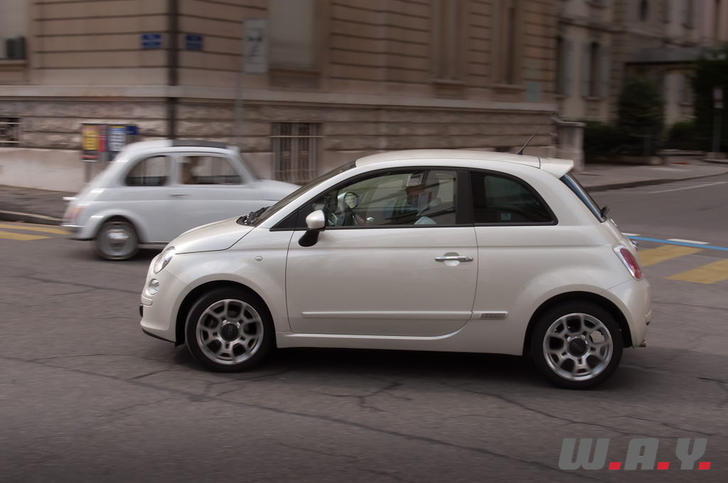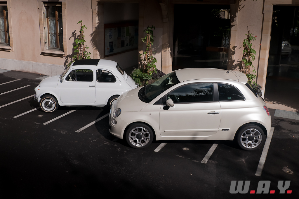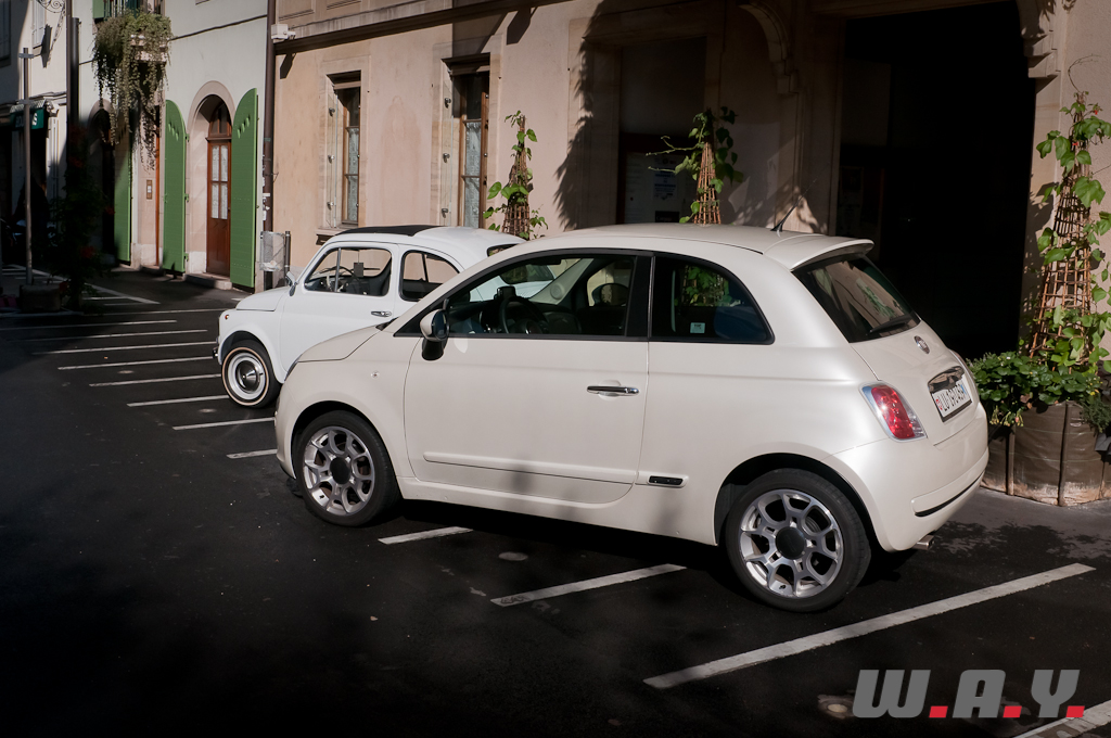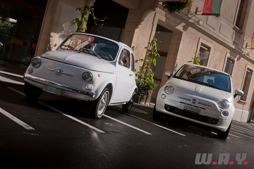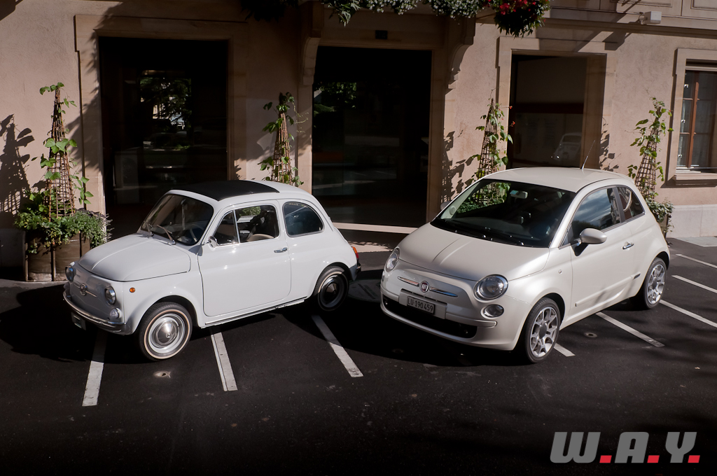 Nos remerciements à Fiat Group Automobiles Switzerland pour le prêt de cette Fiat 500 TwinAir ainsi qu’à Cédric B. pour sa participation à la séance photo/vidéo avec sa magnifique Fiat Nuova 500 F de 1967.