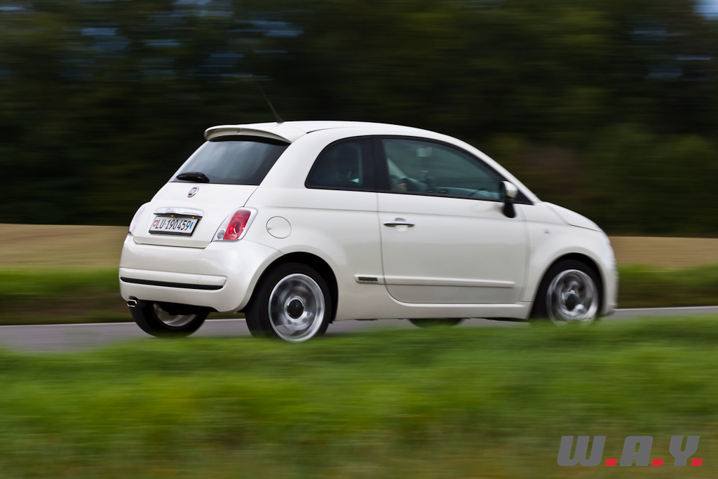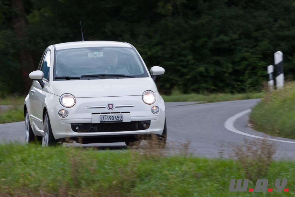 Bien que circonspect devant la fiche technique de ce moteur TwinAir et surtout son architecture, je dois bien avouer qu’il s’avère plutôt surprenant et confère à la Fiat 500 un agrément unique et très original. La 500 ainsi équipée n’a aucune peine à suivre le flux de la circulation, s’arrogeant même des accélérations vigoureuses. Certes on n’est pas en présence d’un foudre de guerre, mais la vigueur du bicylindre garantit des montées en régime rapides et l’optimum du couple présent entre 2’000 et 3’500 t/min suffit pour mener notre puce à bon train. Même sur autoroute, les relances sont fort honorables et ne nécessitent pas de descendre un rapport. Il n’y a finalement que dans les reliefs à forte déclivité ou le petit moteur manque d’allonge, peinant à grappiller dans les dernières révolutions avant le rupteur (6’000 t/min), obligeant à souvent jouer du levier de vitesses.