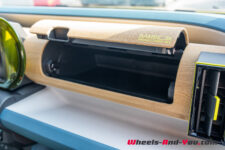 Les matériaux et leur présentation sortent du lot, à l’image de l’espace de rangement en bambou situé au-dessus de la boite à gants, l’encadrement du tableau de bord en plastique jaune transparent et les sièges habillés de bleu et de beige avec quelques touches de jaune. Rien de tel pour vous mettre de bonne humeur même les jours où le ciel est plutôt gris dehors.