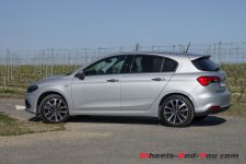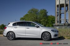 Nous avons donc la quatre portes, la Station Wagon qui est la Fiat la plus spacieuse et la plus flexible dans le commerce et la 5 portes de notre essai, qui associe à son style dynamique de grandes qualités de confort et de polyvalence. C’est d’ailleurs cette dernière version qui succède au plus près à la Tipo première du nom.