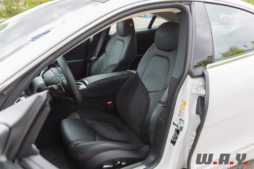 En effet, avec une consommation mixte annoncée de 2.2 l./100km, il prolonge l’autonomie de 400 km pour ainsi proposer un total de 483 km. Toutefois, en rechargeant les batteries tous les soirs et en activant le moteur essence uniquement sur autoroute, soit l’utilisation recommandée par le constructeur, j’aurai aisément fait plus de 500 km avec un plein et ainsi mesuré une consommation moyenne de 5.6 l./100km tout au long de mon essai. A savoir que mon trajet quotidien d’environ 100 km mélange des routes de montagne, des autoroutes (70%) et un peu de ville. A mes yeux, cette valeur est donc tout à fait raisonnable vu la taille de la voiture et surtout quand on sait que la Karma pèse 2’430 kg.
