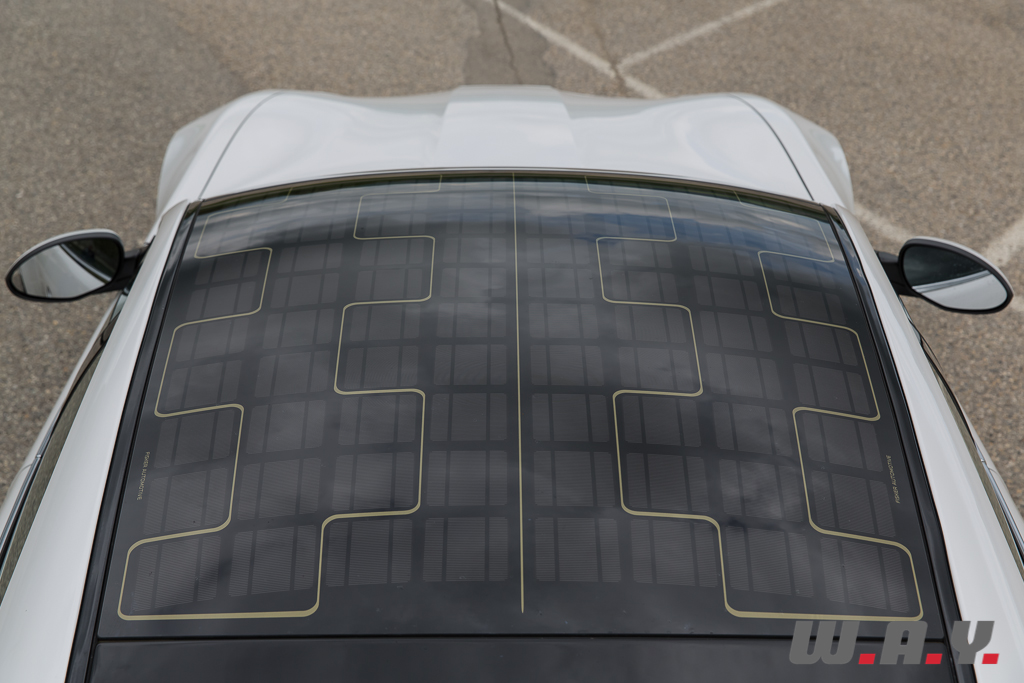 Autre détail amusant reflétant une nouvelle fois l’image d’un concept car, le toit est composé de cellules photovoltaïques. Oui oui, la voiture dispose d’un panneau solaire faisant office de couvre-chef. Indépendamment du look très original de ce dernier, cette technologie sert uniquement à alimenter le système de ventilation et à assister la charge de la batterie 12V nécessaire aux différents équipements électriques embarqués, tels que l’ensemble multimédia/GPS. Un peu gadget dans l’absolu, mais au moins, les ingénieurs ont le mérite d’avoir appliqué un système innovant sur une voiture produite en (petite) série.