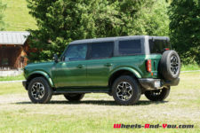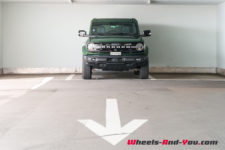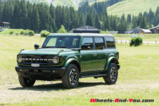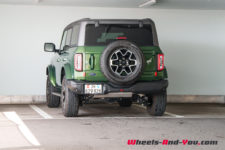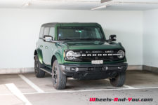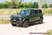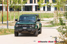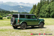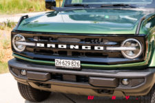 Fini de rêver, revenons au catalogue local. Si la version Outer Banks se veut relativement basique, avec des pneumatiques toutes saisons plus adaptées au bitume qu’à la terre, le Bronco Badlands propose une ribambelle d’équipements pour en faire une bête du offroad. Logiquement, mon cœur aurait dû m’orienter vers l’essai de ce modèle mais la teinte « Eruption Green » de l’Outer Banks du parc presse de Ford Suisse a eu raison de ma décision. Je ne regrette pas ce choix tant cette couleur lui sied à merveille.