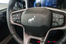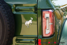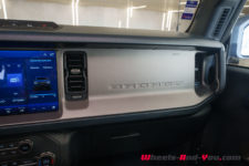 Notons encore que Ford n’hésite pas à faire quelques clins d’œil à la légende Bronco pour agrémenter cette dernière génération, avec par exemple trois petits pictogrammes des premiers modèles dans la trappe à essence.