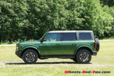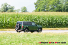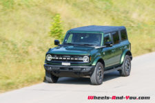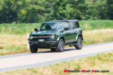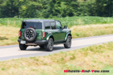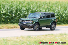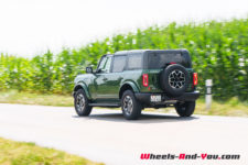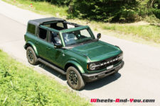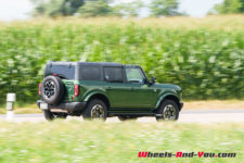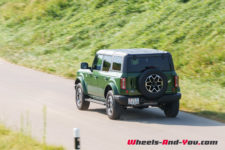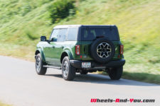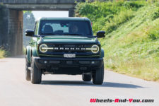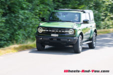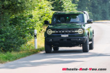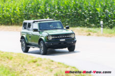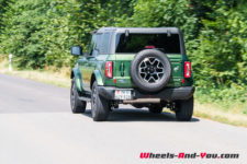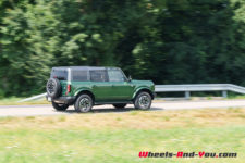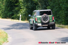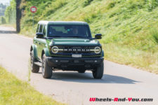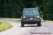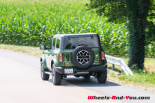 Comme indiqué précédemment, malgré une motorisation relativement puissante, le Bronco privilégie un rythme de conduite digne d’un sénateur. L’autoroute ne lui fait pas peur non plus, les pneus mixtes de cette version Outer Banks sont d’ailleurs bien plus adaptés au bitume qu’aux terrains scabreux. Je relève cependant des bruits d’air importants, principalement dus au fait que le toit est entièrement démontable. Ce que les habitués des SUV modernes considèrent comme des petits défauts ne sont à mon avis pas vraiment dérangeants dès lors qu’on remet ce véhicule dans son contexte. D’ailleurs, en comparaison avec un Jeep Wrangler, le Bronco offre une expérience de conduite bien plus agréable et moins brute à tous les niveaux.