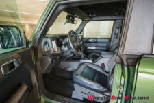 Contrairement au Wrangler qui intègre deux essieux rigides, le Bronco dispose d’un train avant à roues indépendantes et double triangles superposés, gage de comportement routier supérieur.