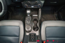 L’habitacle du Bronco est à la hauteur de son côté baroudeur. Brut et relativement simple, il se limite au fonctionnel avant tout. Assez typiques des véhicules américains pure souche, les plastiques sont omniprésents et je regrette un peu cette présentation très sommaire. En rationnalisant, j’admets que ça correspond à l’esprit de l’auto et qu’un Jeep Wrangler n’est pas vraiment différent sur ce point.