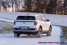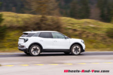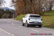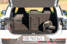 Parlons encore de la consommation. Sur l’ensemble de mon essai, soit 1’090 kilomètres parcourus fin-novembre, avec beaucoup de petits trajets en montagne par des températures oscillant entre -4 et 10°C, elle s’élève à 20.2 kWh/100km. Sur un trajet de référence où j’évalue tous les véhicules électriques que je teste pour Wheels And You – env. 200 km de routes vallonnées dans le Jura suisse et français, j’ai mesuré 18.3 kWh/100km, ce qui correspond à une autonomie théorique totale de 432 km. D’expérience, par des températures plus tempérées (15-20°C), la réduction de consommation avoisinerait les 6-8%, ce qui augmenterait l’autonomie à presque 470 kilomètres.