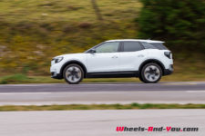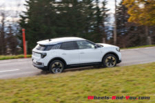 La face avant, presque dénuée d’ouvertures, et les phares ovales lui donnent un air plutôt sympa. Malgré le design très rond et sans arrête saillante qui rappelle un peu celui d’un Citroën C5 Aircross, le profil est assez dynamique, avec des porte-à-faux avant et arrière très courts ainsi qu’un pare-brise arrière très incliné et surmonté d’un large becquet.