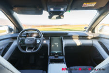 La réactivité de la pédale de gaz est élevée et l’Explorer accélère facilement. Par contre, malgré la position B qui permet de récupérer de la charge batterie en décélération, la plateforme VW ne dispose pas d’un véritable One Pedal, obligeant à peser sur la pédale de frein pour l’arrêt complet. Pas de blâme à Ford sur ce point puisque c’est à Volkswagen qu’il revient. Mais quel dommage de se priver du confort inégalable de ce dispositif, je ne le répèterai jamais assez.