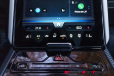 A part une position de conduite que je trouve un peu trop haute, même avec le réglage du siège au minimum, l’ergonomie est aboutie. Certes, il faut se faire au commodo rotatif de la transmission, moins pratique qu’un petit levier sur le tunnel central, mais tout tombe sous la main. L’écran central est réactif et désactiver certaines assistances trop invasives dans la conduite est assez rapide.