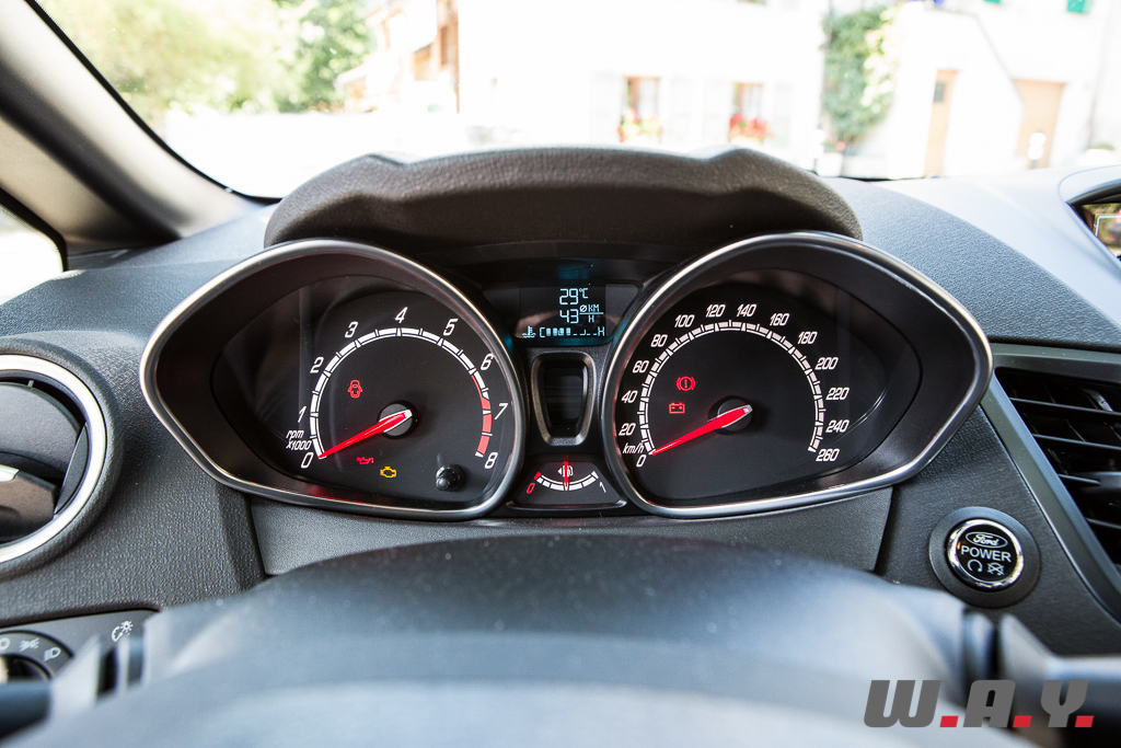 Ce diable de moteur de la famille Ecoboost de 1’596 cm3 développe 182 CV et 240 Nm (290 Nm avec l’overboost) et étonne par sa forme. Ford se targue de sa consommation record par rapport à toutes les générations précédentes avec 5.9 l./100 km, pour ma part j’ai relevé 9.0 litres en conduite très sportive. De par son extrême disponibilité, sa docilité et sa réactivité, il est un atout de taille pour cette voiture qui ne serait rien sans un vrai moteur.