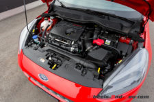 Le changement radical s’opère sous le capot puisque la ST a remplacé son quatre cylindres par un diabolique petit 3 cylindres EcoBoost. Ce fameux moteur a largement fait parler de lui et pour l’occasion il voit sa cylindrée passer à 1.5 litres. J’en vois déjà certains sourirent et je confirme que cela a généré bien des étonnements pendant mon essai. Néanmoins les choses se calment lorsqu’on annonce qu’il développe 200 ch pour un couple de 290 Nm.