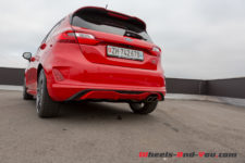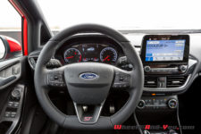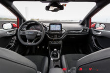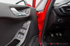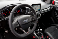 Deuxième bonne surprise, la planche de bord a été totalement revue, c’était un point que nous avions reproché à la précédente ST. Pour le coup, ici rien à redire, c’est nettement plus flatteur, aussi bien en terme de présentation que de qualité. Ford a fait un véritable effort à ce niveau et ça se perçoit immédiatement. Fini le temps d’un habitacle basique avec des plastiques durs, l’écart avec le leader Volkswagen se réduit de manière flagrante. Certes on n’atteint pas encore la rigueur de la Polo GTI, mais dorénavant la Fiesta ST n’a plus à rougir devant la concurrence, je pense notamment à la Peugeot 208 GTi qui était à mes yeux le meilleur compris de ce segment.