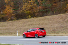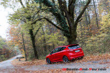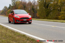Un peu moins radicale que la Toyota Yaris GRMN, cette nouvelle Fiesta ST conserve les qualités dynamiques de la génération précédente mais surtout je constate avec grand plaisir qu’il y a un net changement au niveau de l’amortissement. En effet, si c’est toujours aussi efficace, c’est avant tout nettement plus confortable. La suspension reste relativement ferme, mais cette nouvelle ST a perdu le côté « tape-cul » de la précédente. Voilà une bonne nouvelle ! J’ai ainsi pu combiner trajets quotidiens avec des portions d’autoroute et petites arsouilles sur routes sinueuses, tout cela sans compromettre mon dos et sans devoir prendre un abonnement chez mon ostéo.