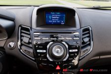Premier constat : le cockpit ne respire pas la modernité. Le design date effectivement d’une autre époque, particulièrement en ce qui concerne le minuscule écran multimédia non tactile et coincé dans sa carapace de plastique rigide. Quoique correctement assemblé, c’est vieillot et sans charme, repris tel quel de la Fiesta ST de base. Quant à l’intuitivité de l’info-divertissement signé Sony, je la trouve fouillis, encombrée de boutons parmi lesquels on se perd facilement. Une fois le doigté habitué à cette ergonomie d’un autre âge, cela devient plus facile, mais demeure assez déplaisant à l’utilisation et au visuel. On est loin des standards épurés d’aujourd’hui. Ceci étant dit, le rendu sonore est bon, c’est un point essentiel.