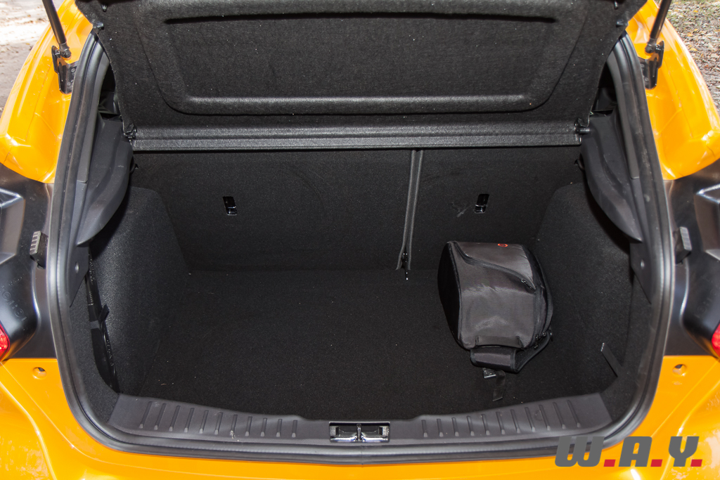 La première chose qui frappe, c’est la couleur de la carrosserie. « Tangerine Scream » qu’elle s’appelle. Certes c’est agressif, peu discret, mais colle à mon sens parfaitement à la vocation et au positionnement de l’auto. Rassurez-vous, d’autres teintes plus conventionnelles sont disponibles.