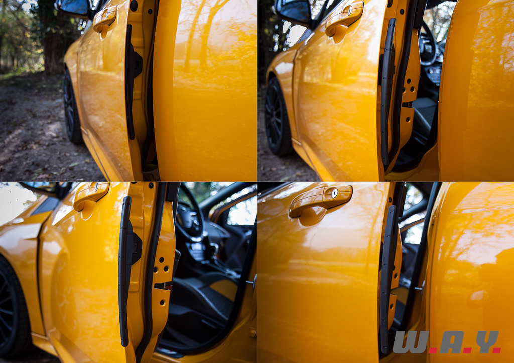 J’ai également découvert pour la première fois un ingénieux système de protection des arêtes de portières (option) où à l’ouverture une languette de plastique s’extrait du flanc intérieur de la porte pour venir protéger la bordure extérieure. De quoi sortir en toute quiétude de l’auto dans un box étroit par exemple. Bien vu ! Ah ! si toutes les autos en étaient équipées, fini les touchettes signées d’une trace de peinture ou pire, d’une petite cabosse.