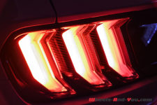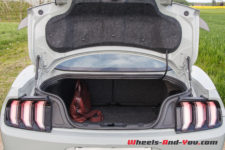 A l’arrière, on retrouve les trois feux, translucides sur cette déclinaison, en forme de barrettes, un diffuseur d’air (celui de la GT500) et surtout quatre grosses sorties d’échappement chromées. Un gros travail sur l’aérodynamisme a été effectué avec un gain de 22% en termes d’appui comparativement à une Mustang GT normale. La messe est dite cette Mach 1 affiche sa sportivité.