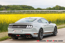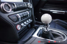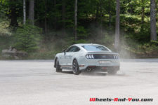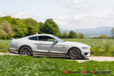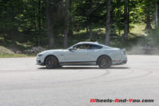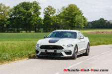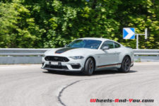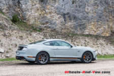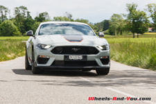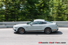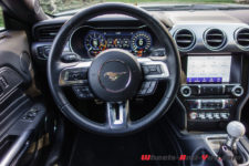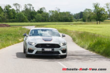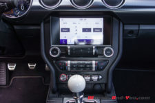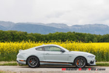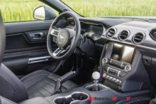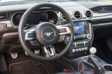 La puissance est transmise sur le train arrière via une boîte manuelle à six rapports TREMEC TR3160 (celle de la GT350) équipé d’un refroidisseur d’huile. L’embrayage double-disque est celui de la GT. Ainsi, la Mach 1 effectue le 0 à 100 km/h en 4,8 secondes et atteint une vitesse maximale de 267 km/h. En option, une boîte automatique à dix rapports est disponible mais pour moi elle n’aura pas la même saveur que cette boite mécanique.