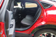 A l’arrière, l’espace est immense. Pas de passage de transmission et l’empattement énorme permet aux plus grands de loger leurs jambes. Le coffre offre de quoi faire en terme de rangement et j’aime la tablette occultante des bagages en tissus tendu. Un gain de poids intelligent.