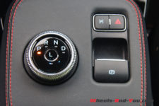 Le volant est bien proportionné avec ce qu’il faut de commandes pour gérer l’essentiel. J’aurais toutefois préféré une mollette ronde pour régler le son plus facilement que cet interrupteur. Derrière le volant se trouve un écran indiquant vitesse, pourcentage de batterie, autonomie restante et température extérieure. Les plastiques des contre-portes marquent beaucoup les gouttes d’eau lorsqu’il pleut, il faudra les essuyer souvent car cela fait vite très sale. Les sièges confortables à l’avant maintiennent peu en latéral, dommage.