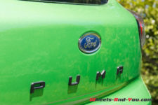 Bien campé sur de belles jantes de 19 pouces, la face avant est plus agressive par rapport à celle d’un Puma « normal », avec un bouclier ajouré pour laisser passer l’air nécessaire au refroidissement du moteur et de son petit turbo. De plus, dans le spoiler avant peint couleur carrosserie est intégrée une lame en plastique noir sur lequel est écrit Ford Performance. Une touche sportive qui a son utilité. En effet, il permet d’augmenter l’appui sur le train avant.