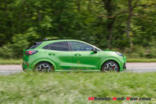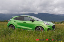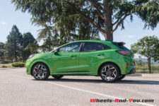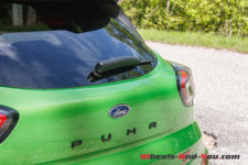 Avec sa teinte « Vert Furious » signifiant furieux chez les anglo-saxon, j’ai devant moi un Puma ST différent du reste de la production grâce à un kit carrosserie spécifique à cette déclinaison qui le rend bien plus agressif. Pour la petite histoire, en Europe, cette même couleur reçoit l’appellation « Green Mean » qui veut dire méchant… Furieux, méchant, ce Puma ST aime se faire remarquer.