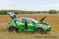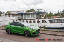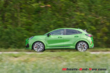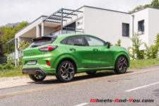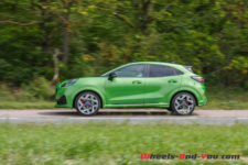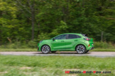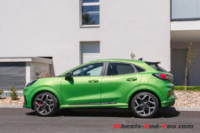 J’ai eu du mal à lui trouver un défaut. Allez, peut-être ces assemblages plastiques qui ternissent un peu la finition. Et tant qu’à faire une couleur vive sympa sur l’extérieur, pourquoi ne pas faire des rappels à l’intérieur ? Mais franchement là, je pinaille, car ce Puma ST est le SUV compact par excellence. Il existe aussi le VW T-Roc R ou l’Audi SQ2, mais ils sont 4×4 et bien plus chers. Le Peugeot 2008 dans la même gamme de prix, proposé en boite automatique, est plus familiale avec un châssis moins dynamique.