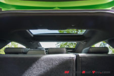 Avec un parebrise chauffant, un capteur de pluie, une caméra de recul, la reconnaissance des panneaux, la prévention de collision avec freinage post-collision, la détection des vélos et piétons, etc, l’équipement compris dans le « Pack Assistance au conducteur II », proposé en option, est plus que complet. Pour avoir roulé souvent sous la pluie durant mon essai, je peux dire que la ventilation fonctionne à merveille et désembue parfaitement. Un hayon électrique est disponible en option pour CHF 400.- et je le recommande, c’est tellement pratique. Cerise sur le gâteau, pour CHF 1’300.-, l’option toit ouvrant panoramique éclaircit l’habitacle et est bien sympa en ville ainsi que dans les bouchons.