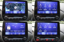 Pour se rattraper un peu, le système multimédia SYNC3 est performant, intuitif et rapide. Ses fonctions audio et de navigation peuvent être actionnées soit par commande vocale, soit via l’écran tactile. De série, sur la finition X de notre voiture de test, il y a la recharge du téléphone par induction et une prise USB pas très bien placée car à côté du levier de vitesse, ce qui fait que le câble gêne pour les passages de rapports. Heureusement, il y a une autre prise située dans le bac à rangement central. De série encore, une sono « premium » de chez B&O avec une puissance d’amplification de 575 Watts. De quoi écouter du bon son.