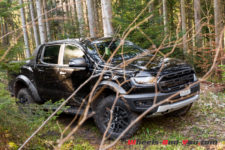 Enfin bon, le plus grand plaisir, c’est surtout de quitter le bitume. Tel un gosse, à la moindre vue d’un chemin de terre, je me jette dessus et je ne réponds plus de rien. Sans même enclencher les quatre roues motrices, le Raptor se comporte à merveille, offrant un plaisir indéniable derrière son volant. D’une part on peut d’amuser en glissant à souhait, mais il devient également un redoutable franchisseur en 4×4 lorsque les difficultés se profilent devant ses roues. L’équipement offroad de série, notamment les suspensions Fox, et les différents modes de conduite en font un redoutable engin. Ma plus grande frustration lors de cet essai est de ne pas trouver assez de terrains à disposition pour profiter pleinement de ses capacités et de ses performances. Notre pays est bien trop restrictif dans ce domaine, tant mieux dans un certain sens, et c’est là aussi un facteur qui peut vous raisonner pour d’un tel achat.