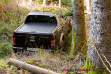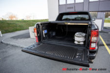 Sur le flanc, je profite des belles jantes montées sur des pneus tout-terrain. Voilà qui donne le ton, et les marchepieds en métal peaufinent cette image bestiale. L’arrière est un peu plus commun, difficile de révolutionner le design d’un pickup. Une benne, ça reste une benne. Bon ici elle dispose d’un couvercle déroulant qui ferme cet espace, c’est bien étudié et ça présente bien.