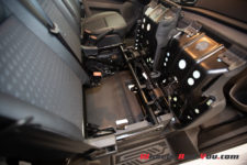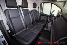 Là où le Transit fait très fort, c’est en espaces de rangements dans l’habitacle. Pas moins de 7 porte-bouteilles, dont deux de 2 litres, sont disposés autour des occupants. Dans les portes, 3 niveaux de rangements peuvent même accueillir des objets imposants. Sur la planche de bord on trouve encore 2 vide-poches avec une prise 12V et une USB. Comme s’il manquait encore des rangements, l’assise des 2 sièges passagers se soulèvent pour faire apparaître un coffre supplémentaire.