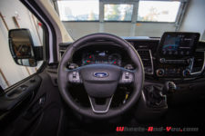 Le moteur du Transit demande un peu de temps pour être pris en main. Une fois habitué à l’étagement de la boite, il offre une conduite très souple, économique et même plus confortable à cause du niveau sonore dans l’habitacle. Petit bémol, l’absence du Start/Stop de série (option à CHF 270.-) prouve qu’il fallait tirer le prix vers le bas, tout comme la serrure qu’on ne saurait cacher sur cette porte blanc immaculé.
