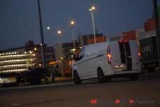 Donné pour 1m97, le Transit tel qu’essayé doit tutoyer la barre des 2m par le dessus. En deux occasions, la toise du parking souterrain à failli me refaire le toit façon art moderne. Peut-être est-ce dû aux jantes ou a des ressorts de suspension encore peu sollicités ?